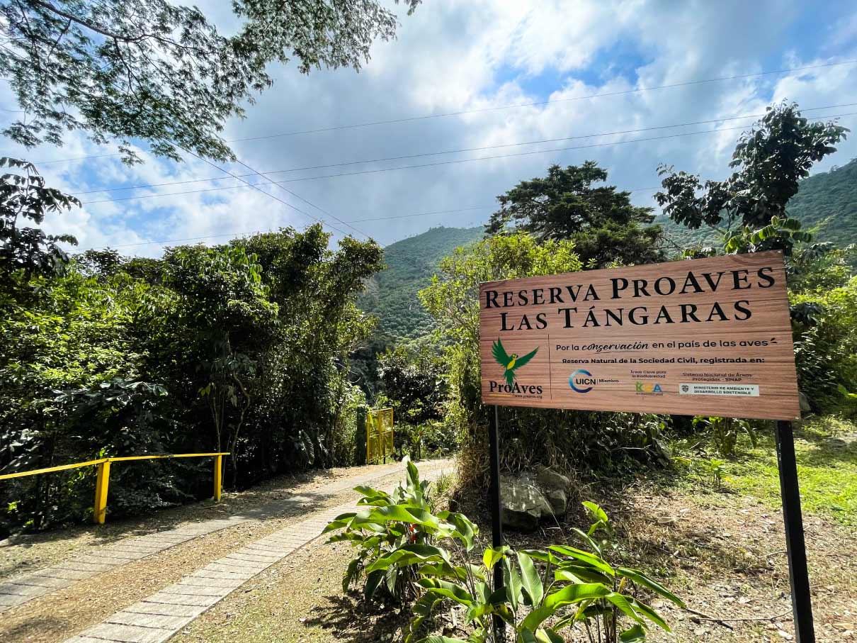 Las Tángaras ProAves Reserve was created to protect the habitat of two endemic bird species: the Gold-ringed Tanager (Bangsia aureocincta) and the Black-and-gold Tanager (Bangsia melanochlamys).